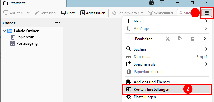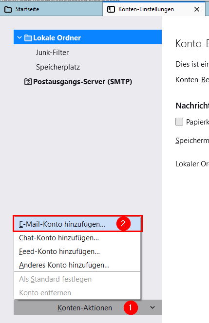 Quelltext anzeigenÄltere VersionenLinks hierherCopy this pageNach oben Letzte ÄnderungenSend via e-MailPrintPermalink × Thunderbird Konto-Einstellungen aufrufen Neues E-Mail Konto hinzufügen mail/thunderbird/setup.txt Zuletzt geändert: 2021/12/18 22:15von pme